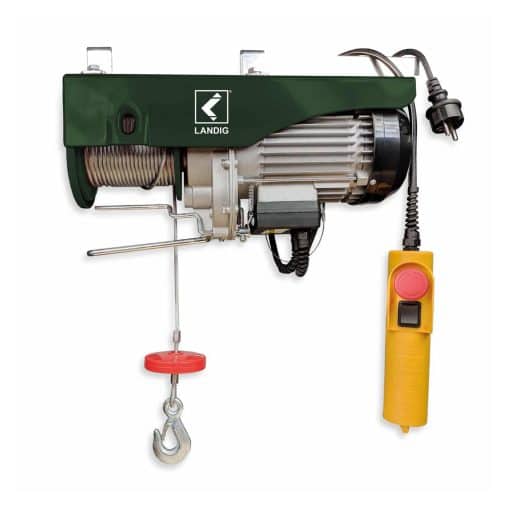 Stable electric cable winch in a durable design for ceiling or wall mounting . Load capacity 200 or 400 kg. Lifting height: single pull 11 m / double pull 5.5 m.