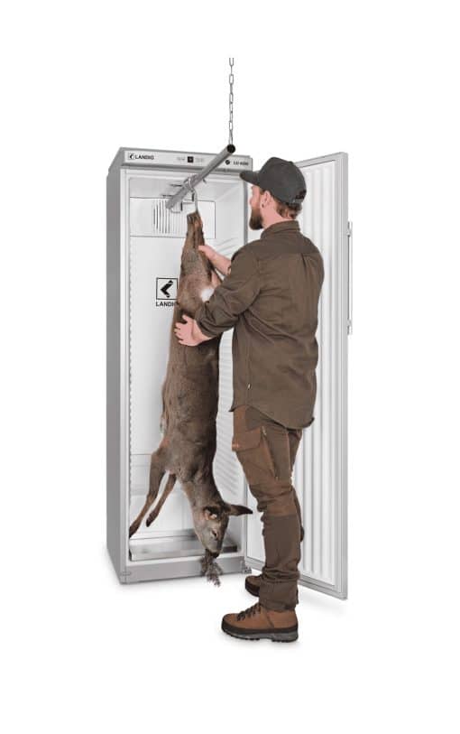 The Professional Landig LU 4500® Game Fridge is designed to store two roe deer or one wild boar up to 85 kg. The stainless steel game rack can support a load of up to 150 kg.