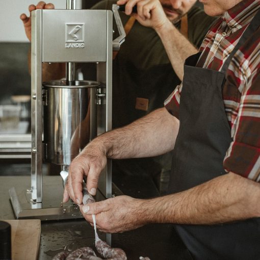 3rd generation – a purchase for life! also suitable for left-handers New model – made of stainless steel, with metal gears!Professional standing sausage filler for quick and easy sausage making. Durable and robust design – all parts, including the sausage filling funnel, are made of high-quality stainless steel .The stable stainless steel base plate with locking feet ensures a perfect hold. Practical : The sausage filler is suitable for both left- and right-handed people, as the container can be used in both directions. View now .