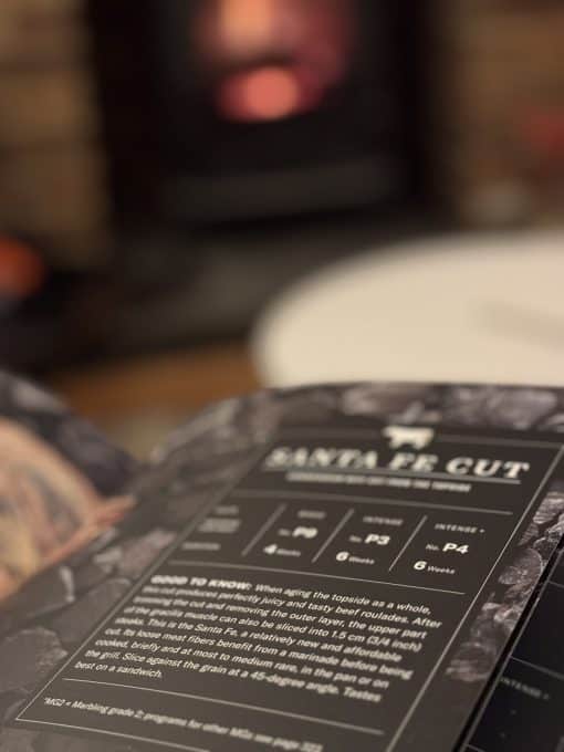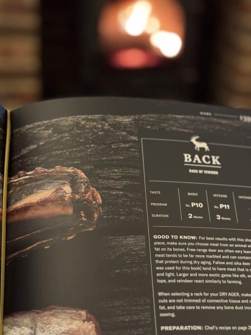 The ultimate standard work on dry aging. The “Dry Aging Bible” by DRY AGER® – over 300 pages of concentrated knowledge, know-how, workshops, ripening and cooking recipes and especially on the subject of dry-aged game, more content than ever before.