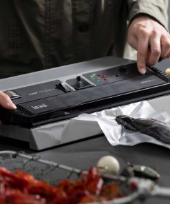 The professional vacuum sealer V.200 Premium X with a sealing band length of 340 mm is characterized above all by the double weld seam and the new standard LCS and LTP systems . For more information about these new systems, see details below . The vacuum build-up on the V.200 Premium X is shown via an LED display. From the V.200 onwards, all Lava machines work fully automatically. The maximum achievable vacuum is -0.94 bar. The vacuum sealer is used in the household, catering and small business sectors, as well as in industry.